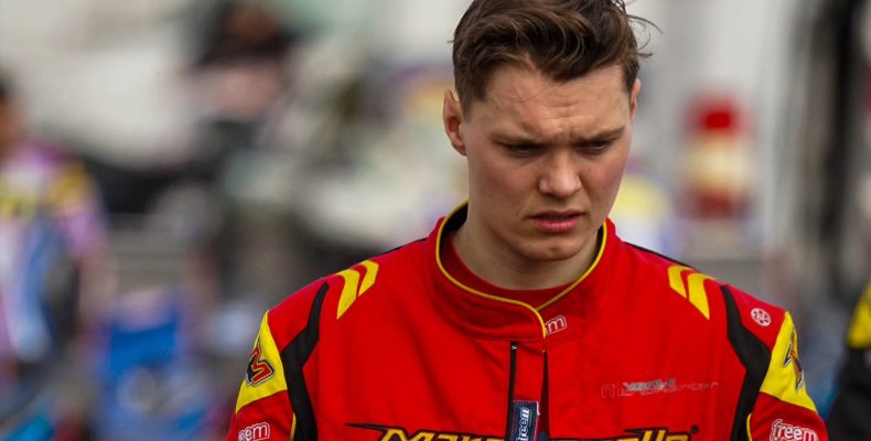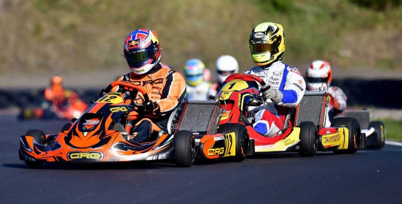 Da flommen stoppet Formel 2 – løpet i Italia, dro Dennis Hauger til Andebu og kjørte go-kart mot regjerende norgesmester Tobias Seilen Verlo.